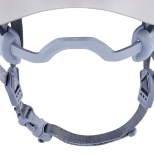 – Design provides greater coverage and is lower in the back for optimal protection against impacts to the side, front, and rear of the head (Petzl’s TOP AND SIDE PROTECTION label)